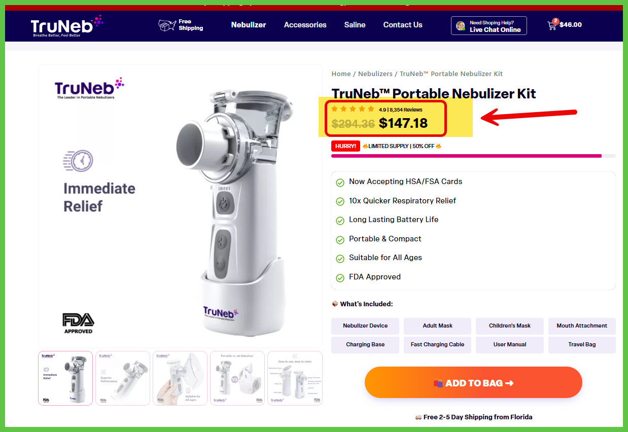 ✅ You don’t need a prescription to buy the TruNeb™. And it’s FSA/HSA eligible!